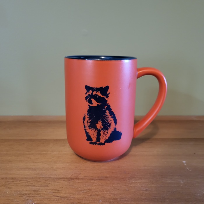 This one was my work mug for a long time. I stopped by a Caribou Coffee before work one day and it immediately called to me. I love raccoons and the colors were perfect.
