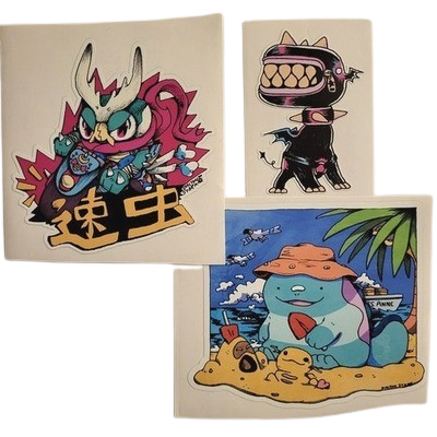 I have more stickers than I have places to put stickers. Here's a list of some of the stickers I have, with credits to the artist or places to purchase them: